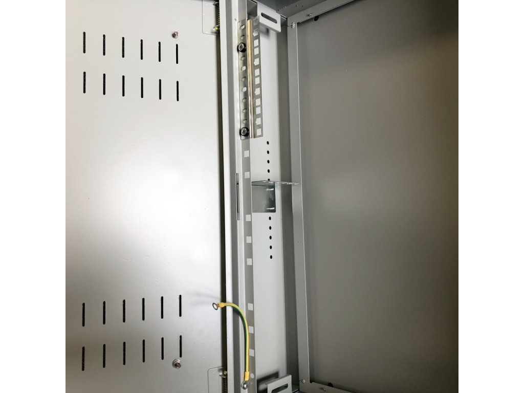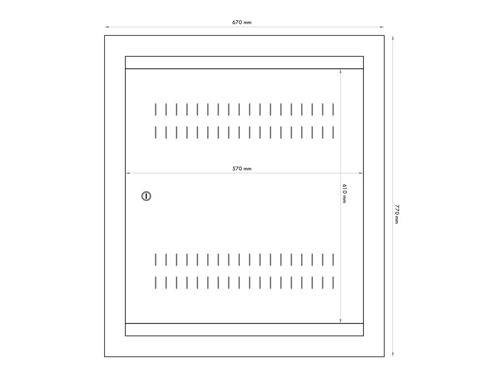 Datacom 19" rozvaděč pod omítku 4U+2U/150mm (plech) Nástěnná rozvaděčová datová skříň 4U vodorovně + 2U svisle je vyráběna pouze v jedné rozměrové variantě o rozměrech: vnější výška s rámem (bez rámu): 770 mm (670 mm) vnější šířka s rámem (bez rámu): 670 mm (570 mm) vnější hloubka s rámem (bez rámu): 150 mm (150 mm) Polohovatelné uchycení lišt: - Vertikální lišta 4U (pro umístění komponent ve vodorovné poloze): 110 mm od vertikální lišty 4U k zadní stěně rozvaděče, vertikální lišty lze přemístit kdekoliv v celé výšce rozvaděče. - Horizontální lišta 2U (pro umístění komponent ve svislé poloze): 350 mm (+-80mm) od horizontální lišty 2U ke dnu rozvaděče!!! Změna polohy horizontální lišty 2U je možná pouze před zaomítáním rozvaděče !!! - Tato datová skříň je určena jako rozvaděč pro instalaci prvků strukturovaných kabeláží a prvků telekomunikačních rozvodů. Vlastnosti: - vlastní odvětrávací otvory ve dveřích rozvaděče- skříň tvořena svařovaným skeletem, polohovatelné pozice vertikálních lišt Upozornění: svisle umístěné vertikální lišty 2U lze polohovat pouze před zabudováním rozvaděče- z čelní strany je rozvaděč osazen plechovými perforovanými dveřmi se dvěma panty- lehce nastavitelné levé/pravé otevírání- kovový zámek na klíč s jednobodovým zamykáním- v zadní části jsou 4 otvory pro případné uchycení na v SDK stěně /rozteč 10mm otvorů - 58,5mm x 400mm/- horní a spodní vylamovací průchody pro kabeláž /260x50mm/- před instalací do zdi možno odmontovat záda rozvaděče (rozměr odnímatelných zad 610x500mm), získáte tím větší hloubku pro instalaci. - IP krytí: IP20- povrchová úprava je provedena práškovou technologií- barva šedá