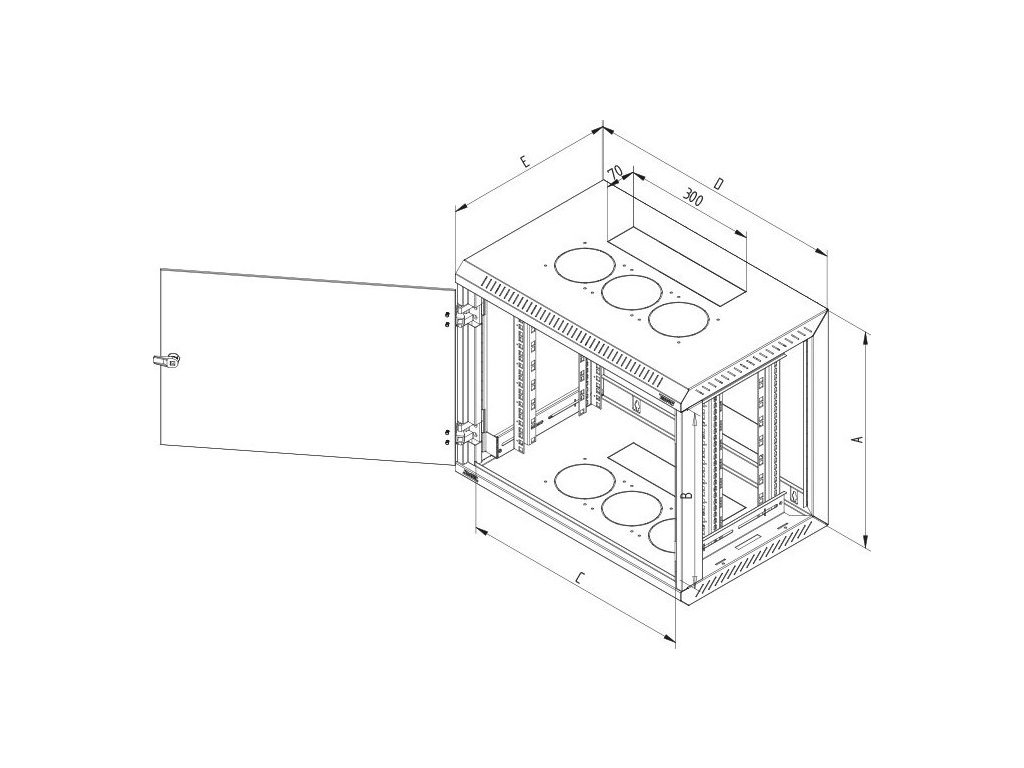 * 19“ jednodílný nástěnný rozvaděč s krytím IP 30