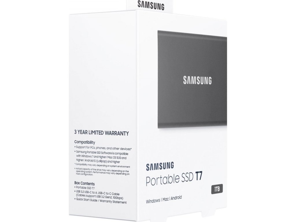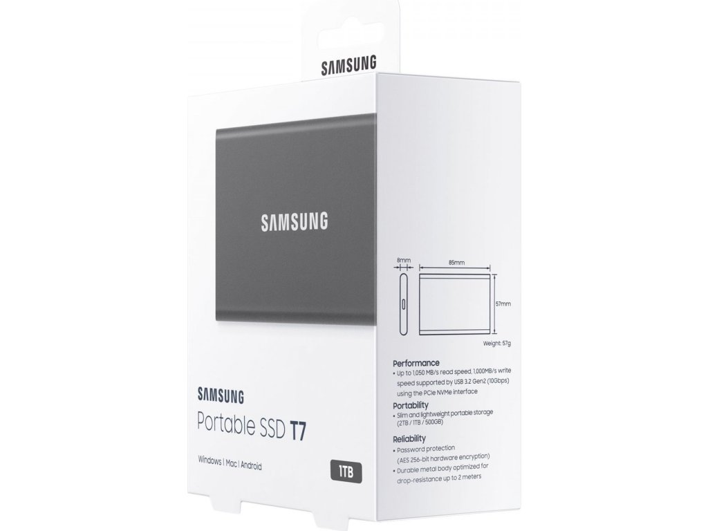 Přenosný disk Samsung SSD T7 dosahuje vyšší rychlosti a tím i nové úrovně přenosu a externího ukládání dat. Díky kompaktnímu, odolnému designu a zabezpečení pomocí hesla je ideální pro přenášení a vysoké zabezpečení uchovávaných dat.