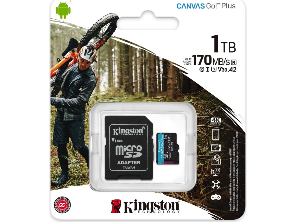 Kingston MicroSDXC karta 1TB Canvas Go! Plus, R:170/W:90MB/s, Class 10, UHS-I, U3, V30, A2 + Adaptér