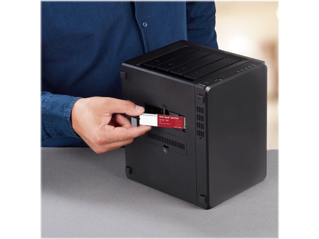 Díky SSD disku WD Red SN700 NVMe s rychlým ukládáním do vyrovnávací paměti zvládnete extrémní pracovní zatížení v náročných prostředích NAS. Robustní odezva systému při použití tohoto disku a výjimečný I/O výkon ho předurčují pro multitasking v prostředí s více uživateli, ve kterých vás nezaskočí ani ty nejnáročnější projekty realizované v rámci malé a střední firmy od virtualizace přes spolupráci na úpravách až po náročná databázová úložiště s efektivním ukládáním do vyrovnávací paměti – to vše při nižších celkových nákladech na vlastnictví.