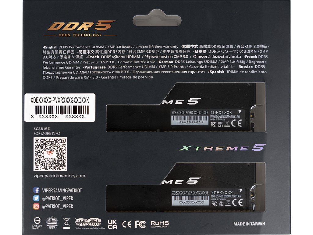 PATRIOT VIPER XTREME 5 RGB 32GB DDR5 8000MHz / DIMM / CL38 / Kit 2x 16GB