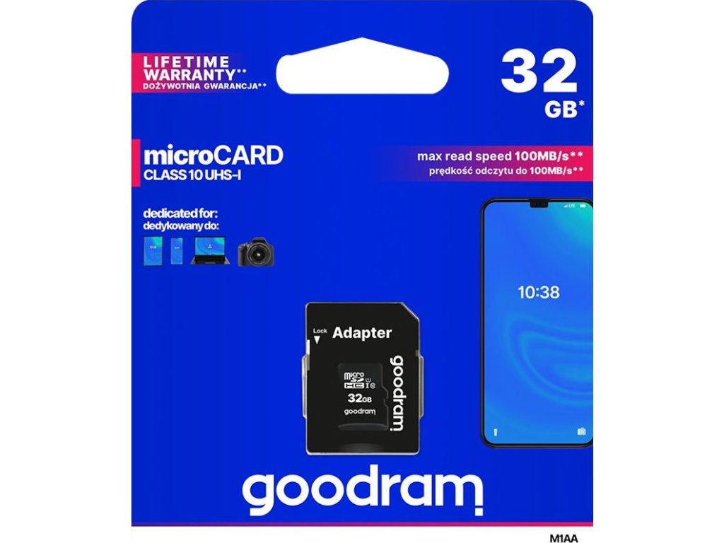 GOODRAM MicroSDHC karta 32GB M1AA, UHS-I Class 10, U1 + adaptér