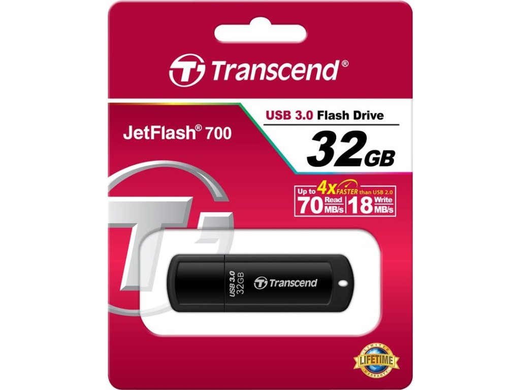 TRANSCEND Flash Disk 32GB JetFlash®700, USB 3.0 (R:71/W:18 MB/s) černá