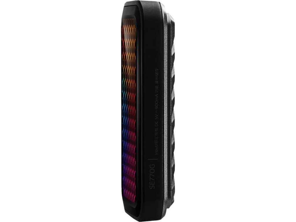 SE770G nie je typický bežný externý SSD disk. Vďaka priestrannému panelu RGB osvetlí váš pracovný priestor nádherným efektom vzoru kocky.