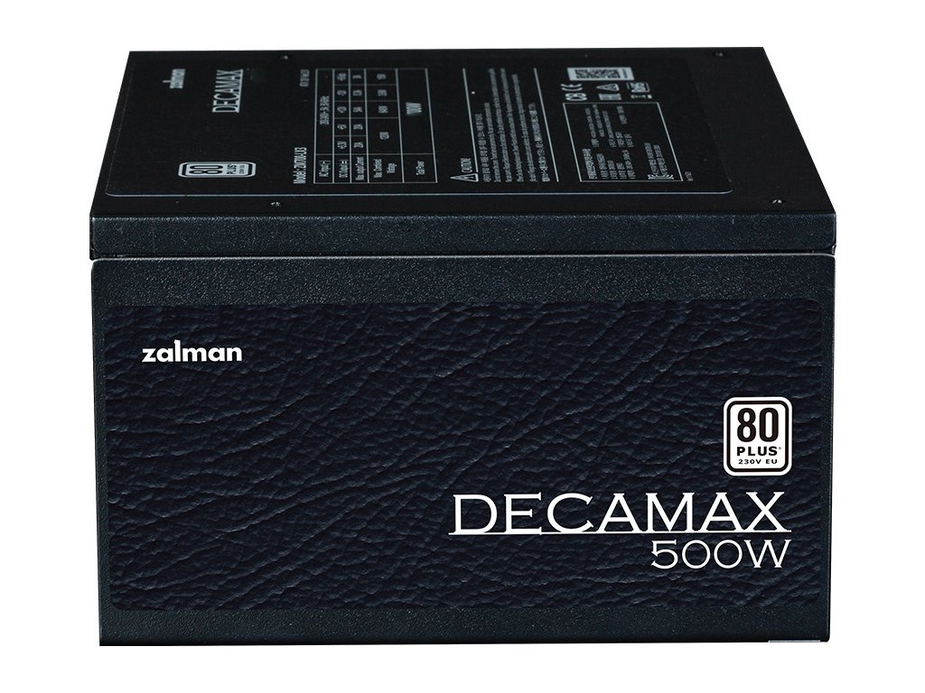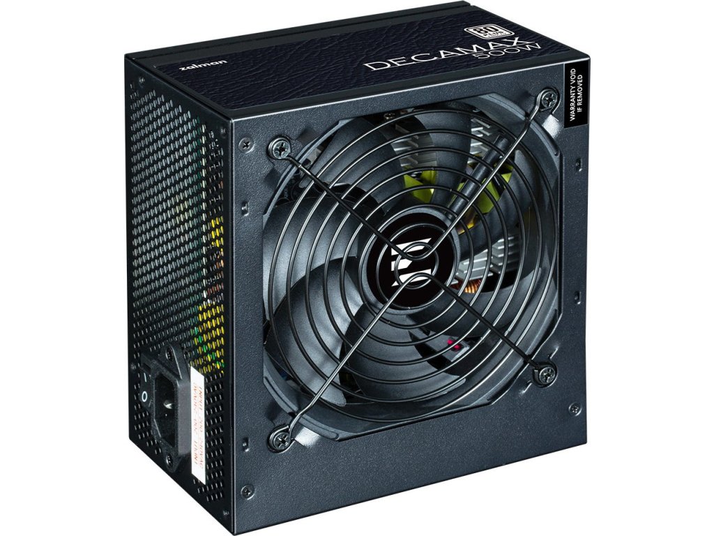 ZALMAN Decamax 500 WNapájecí zdroj o výkonu 500 W osazený tichým 120 mm velkým ventilátorem. Účinnost zdroje splňuje certifikaci 80PLUS Standard.