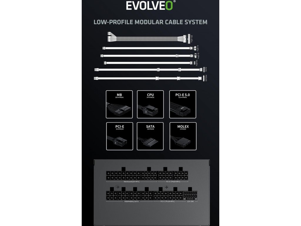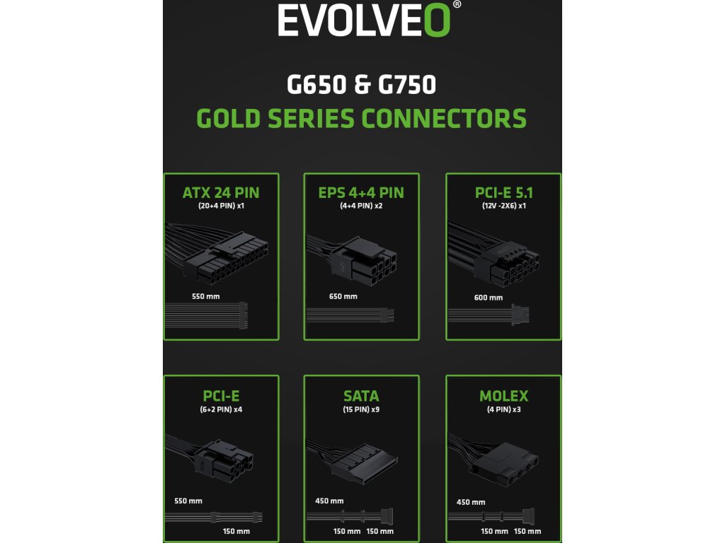EVOLVEO G750, zdroj 750w, 80+ GOLD, ATX 3.1, aPFC, 140 mm ventilátor