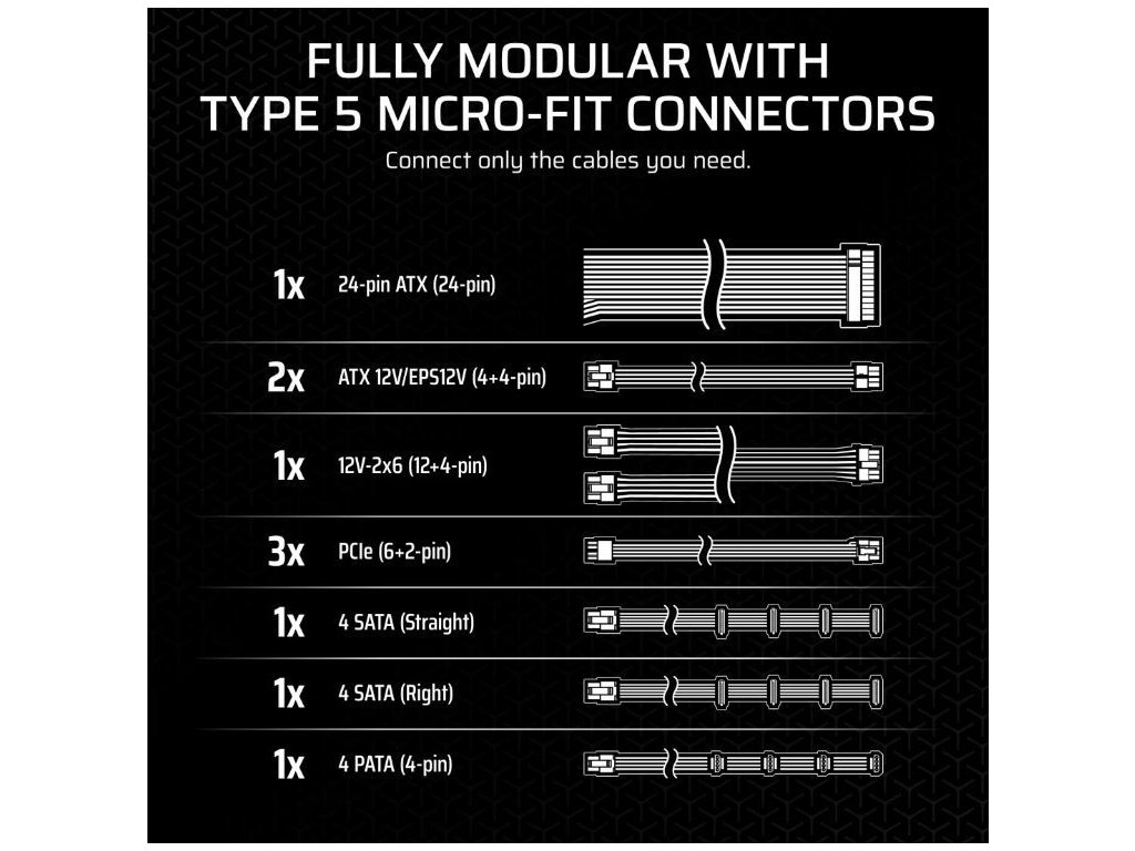 Vybavte svůj příští SFF počítač napájecím zdrojem CORSAIR SF Series 80 PLUS Platinum SFX, který je kompaktní, kompatibilní s ATX 3.1 a plně modulární.