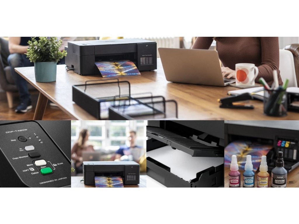 DCP-T420W je kompaktní multifunkční zařízení s funkcemi tisku, kopírování a skenování s možností bezdrátového nebo přímého připojení k počítači přes USB port. Přináší úspory tiskových nákladů systémem doplňování inkoustových zásobníků.