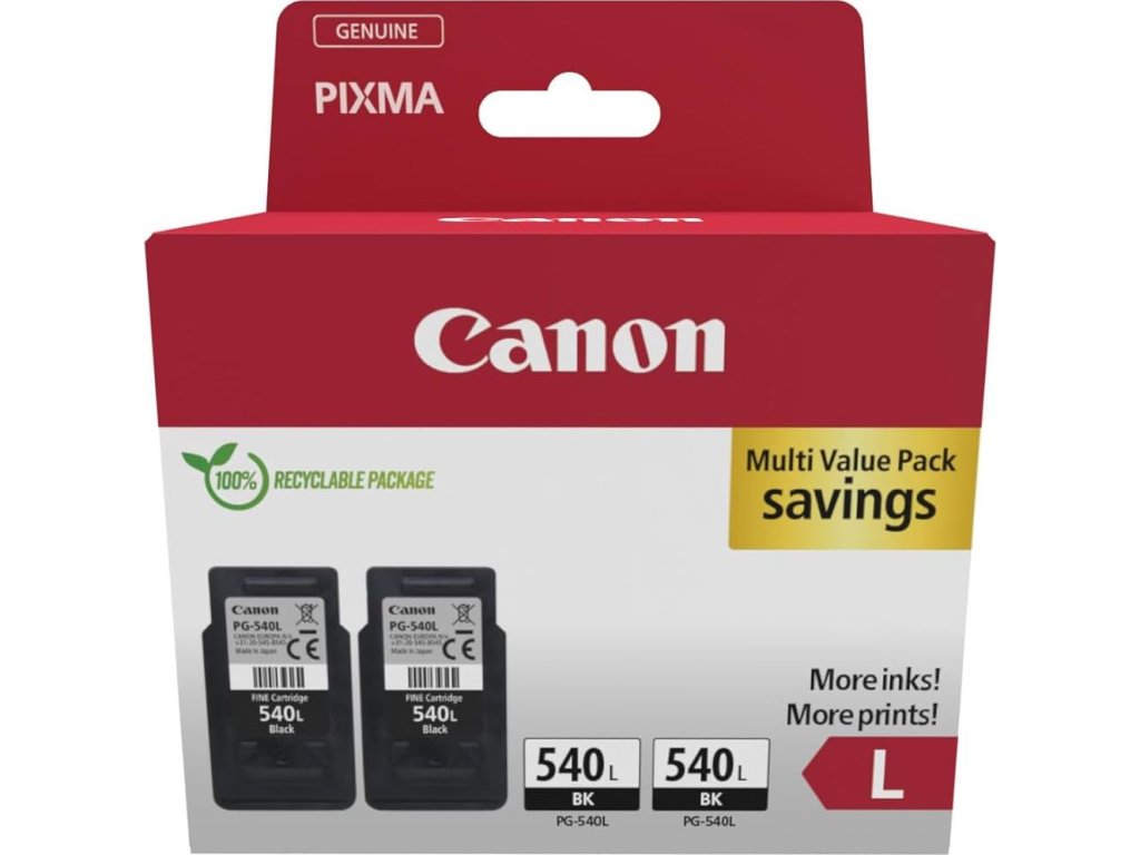 Originální inkoustové kazety Canon PG-540L (2 x černá) s vysokou výtěžností – kartonové dvojité balení