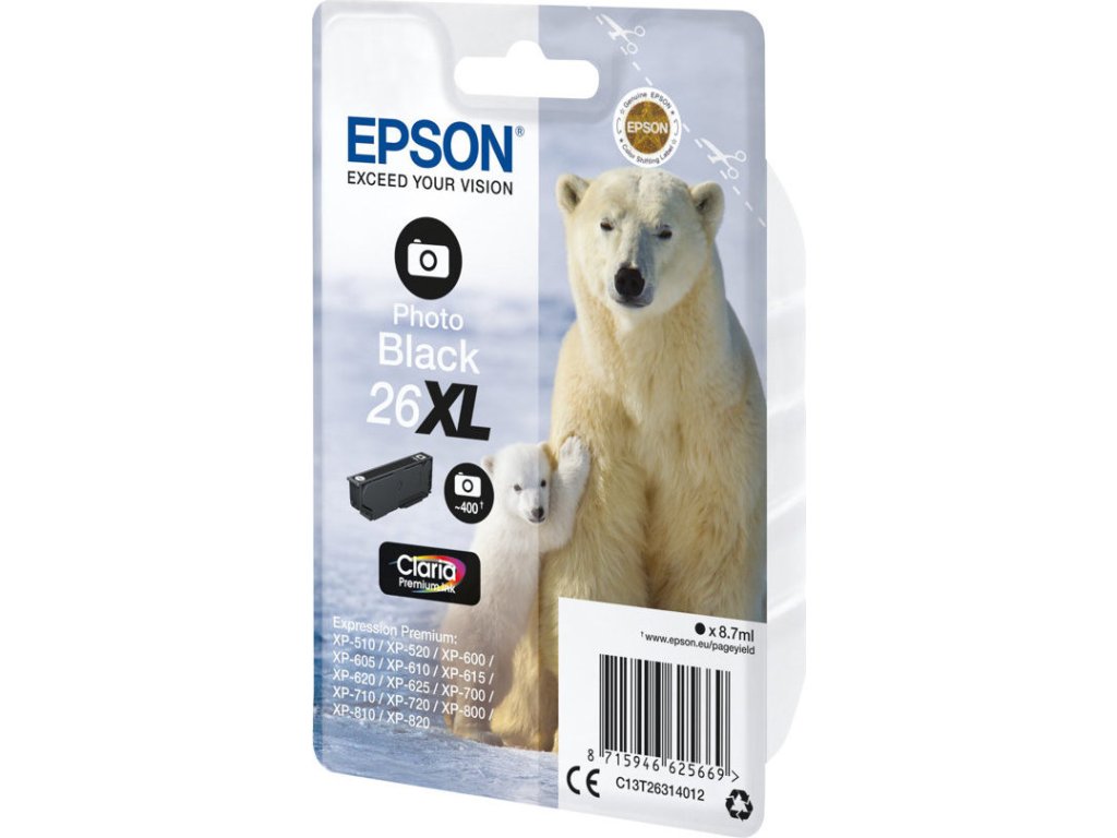 EPSON ink čer Singlepack "Lední medvěd" Photo Black 26XL Claria Premium Ink
