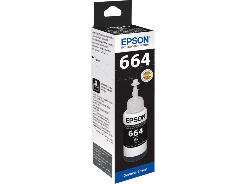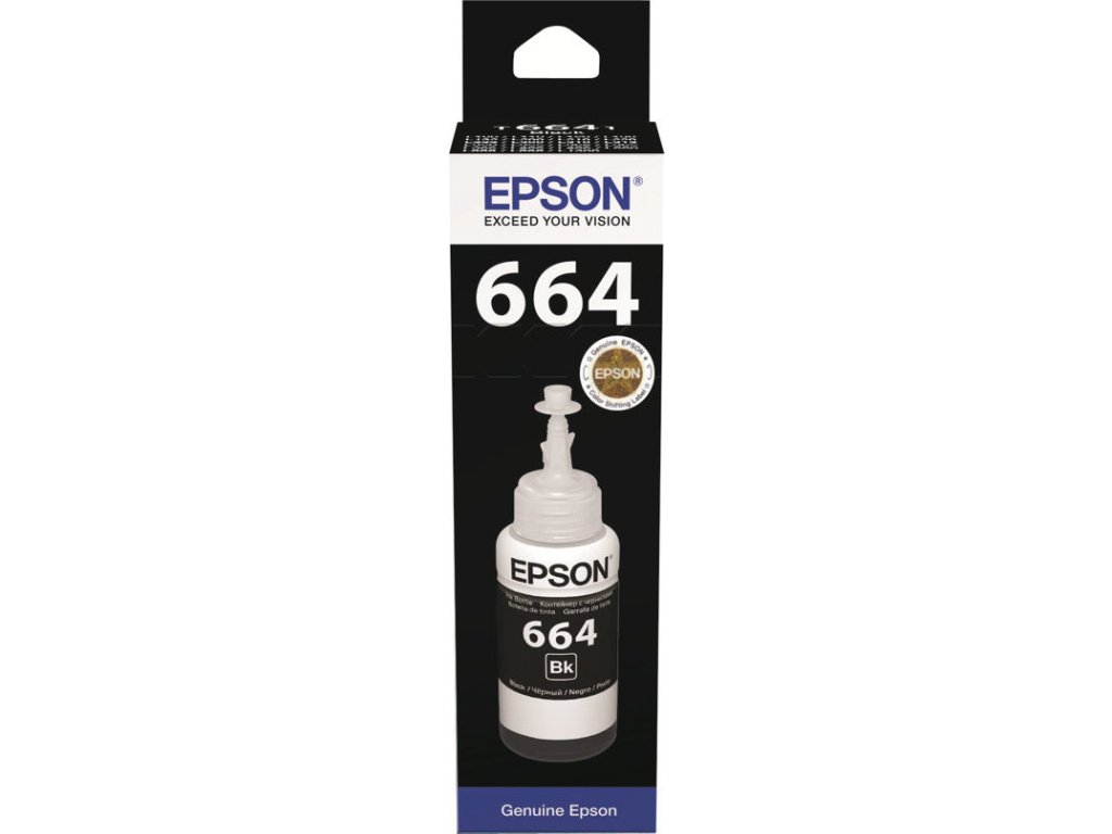 Epson C13T66414A je originální balení černé barvy s obsahem 70 ml pro tiskárny řady Epson L100/110/200/210/300/335/455/550.