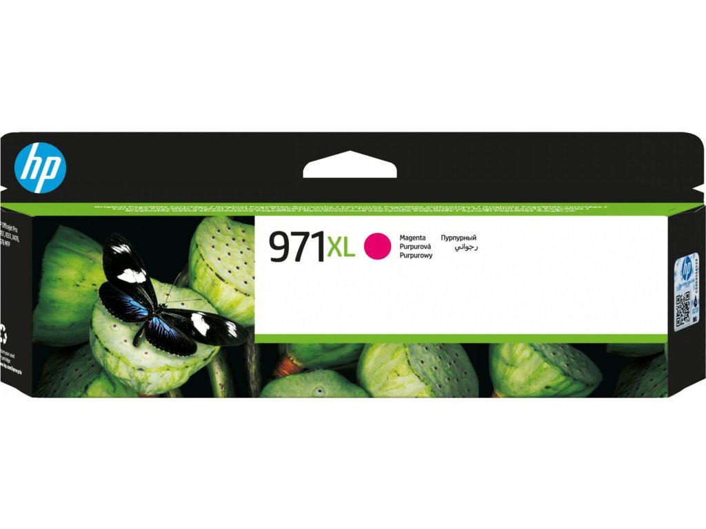Purpurová inkoustová kazeta HP 971XL, výtěžnost 6600 stránek při 5% pokrytí. Kompatibilita s HP Officejet Pro X451/X551dw, Officejet Pro X476/X576dw.