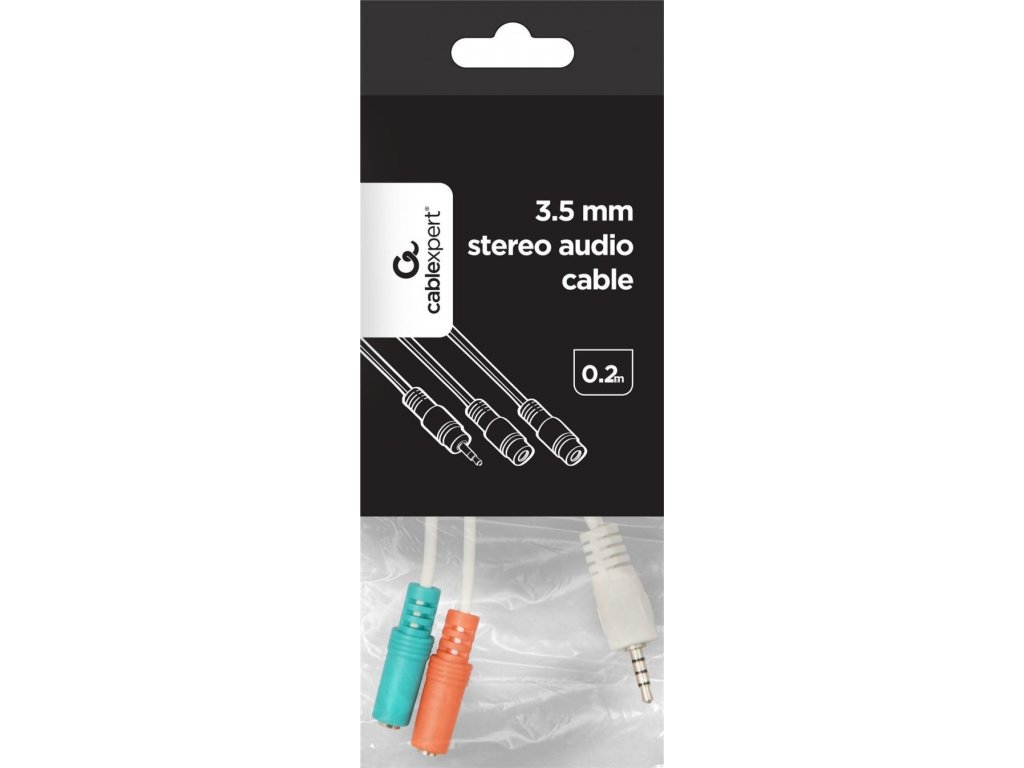 GEMBIRD Kabel rozdvojka jack 3,5mm (4 pólový) na 2x3,5mm M/F, 20cm, bíla