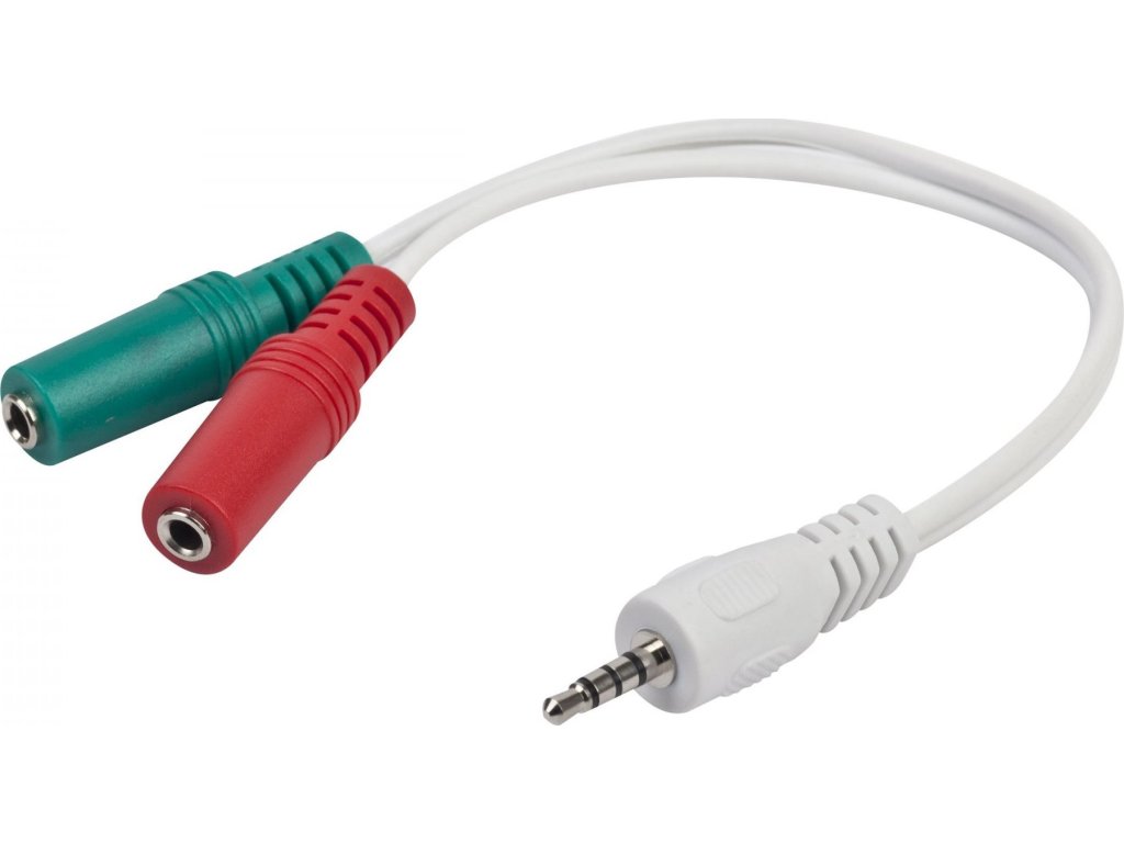 Kabelovár ozdvojka jack 3,5mm (4 pólový) na 2x3,5mm M/F, 20cm, audio. Umožňuje připojení běžných sluchátek do mobilní zařízení s 4pólovým jack výstupem (na jedno jack konektoru jsou vedena sluchátka i mikrofon)