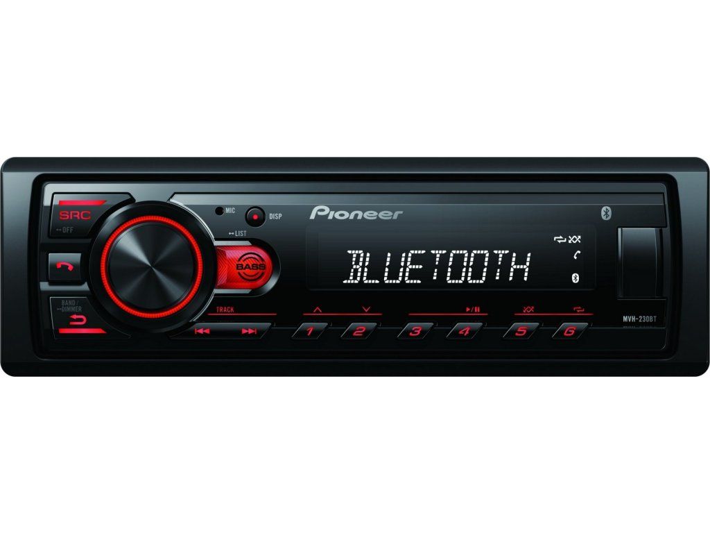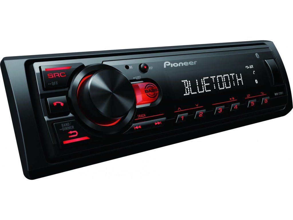 Pioneer MVH-230 autorádio s USB a Bluetooth s integrovaným mikrofonem červené
