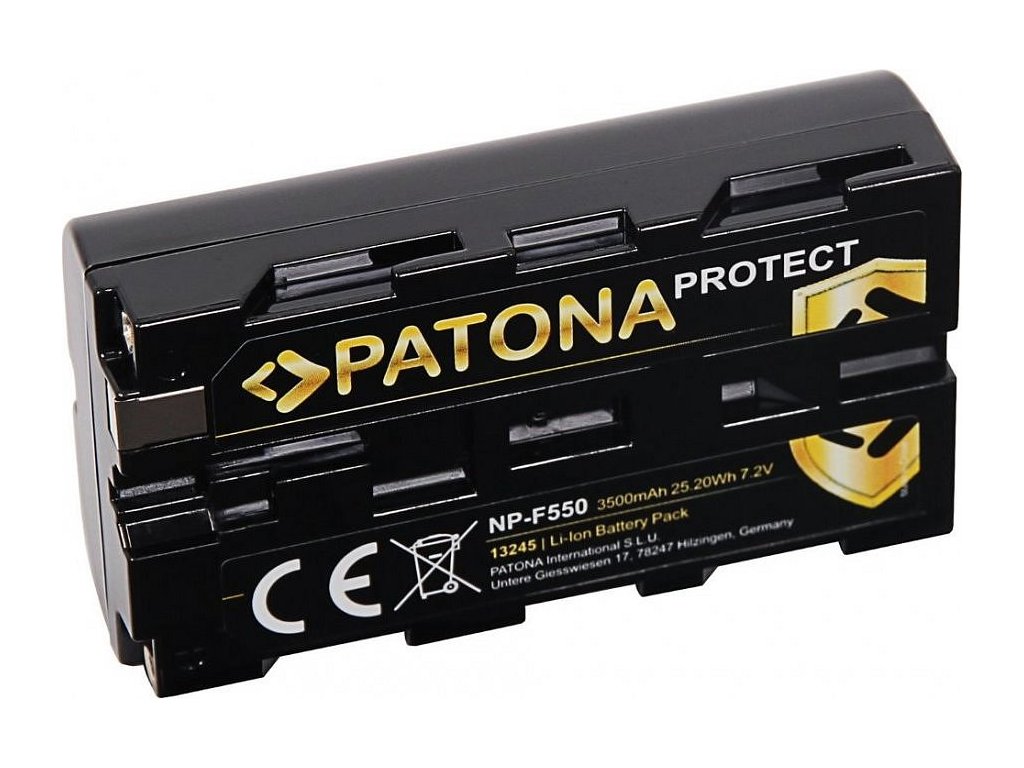 PATONA PROTECT baterie kompatibilní se Sony NP-F550Kompatibilní baterie série Protect pro fotoaparáty a videokamery Sony. Baterie se vyznačují vysokou kvalitou, mají integrovanou ochranu proti přetížení, přebití a přehřívání. Série Protect navíc disponuje ohnivzdorným a extrémně tepelně odolným krytem, který byl vyvinut speciálně pro nepřetržité používání při teplotách -20 až +90 °C.