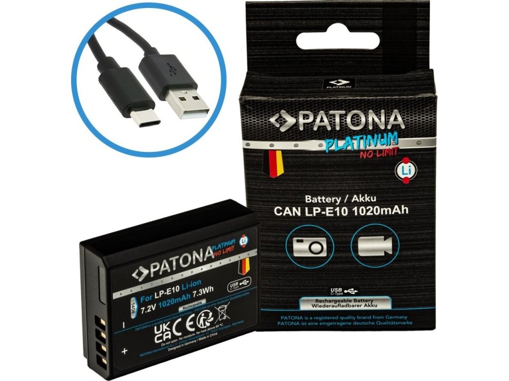PATONA baterie pro foto Canon LP-E10 1020mAh Li-Ion Platinum USB-C nabíjení