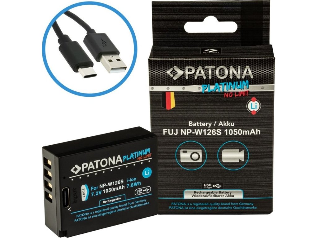 PATONA baterie pro foto Fuji NP-W126S 1050mAh Li-Ion Platinum USB-C nabíjení