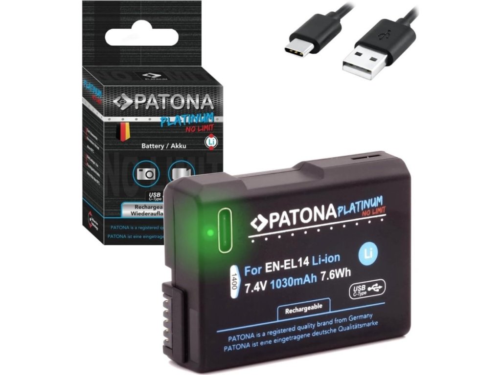 PATONA baterie pro foto Nikon EN-EL14/EN-EL14A 1030mAh Li-Ion Platinum USB-C nabíjení