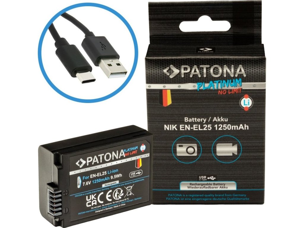 PATONA baterie pro foto Nikon EN-EL25 1250mAh Li-Ion Platinum USB-C nabíjení