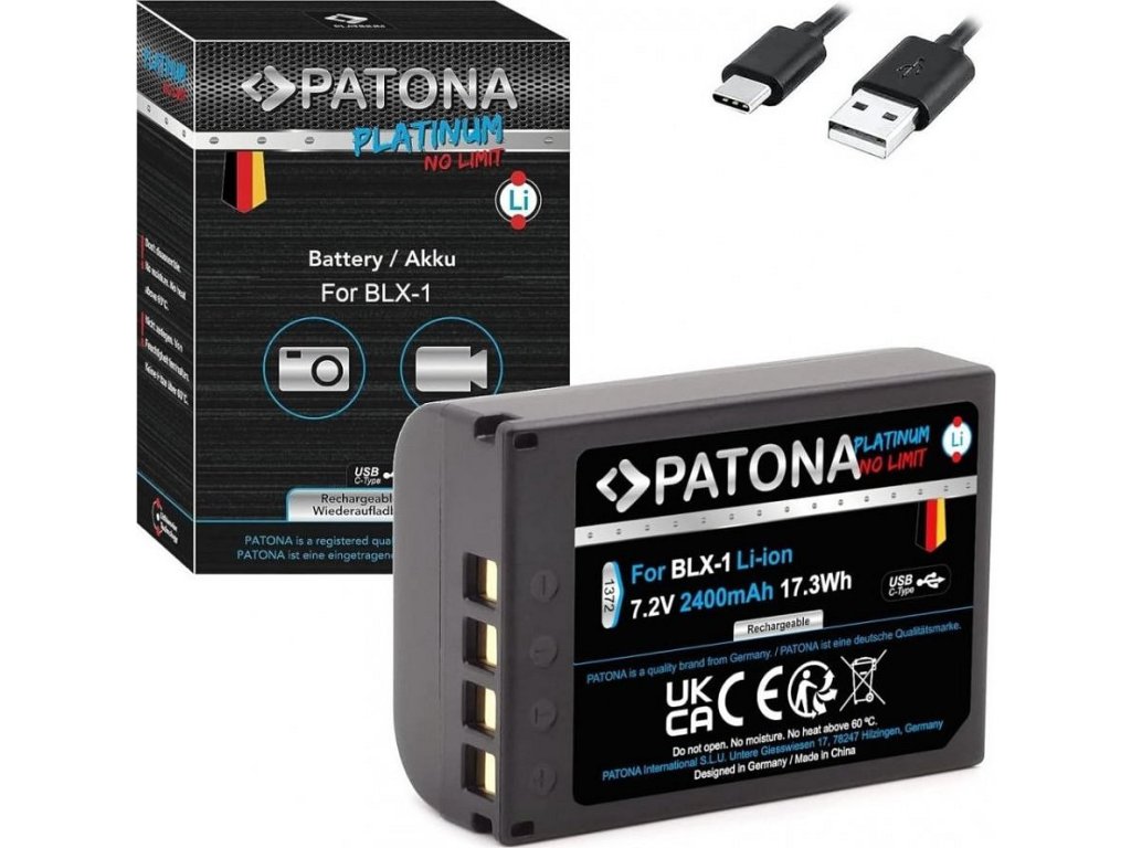PATONA PLATINUM kompatibilní s Olympus BLX-1Kompatibilní baterie pro fotoaparáty Olympus. Baterie se vyznačují vysokou kvalitou, mají integrovanou ochranu proti přetížení, přebití a přehřívání. Nabíjení baterie je realizováno skrze zabudovaný konektor USB-C. Lze ji nabíjet připojením kabelu do USB-C konektoru (např. z počítače, powerbanky či nabíječkou na mobilní telefon) tak i v klasické nabíječce na Li-ion. Nabíjecí proud max. 1,2 A (vyšší vstupní proudy jsou automaticky redukovány pomocí IC ovládání baterie).