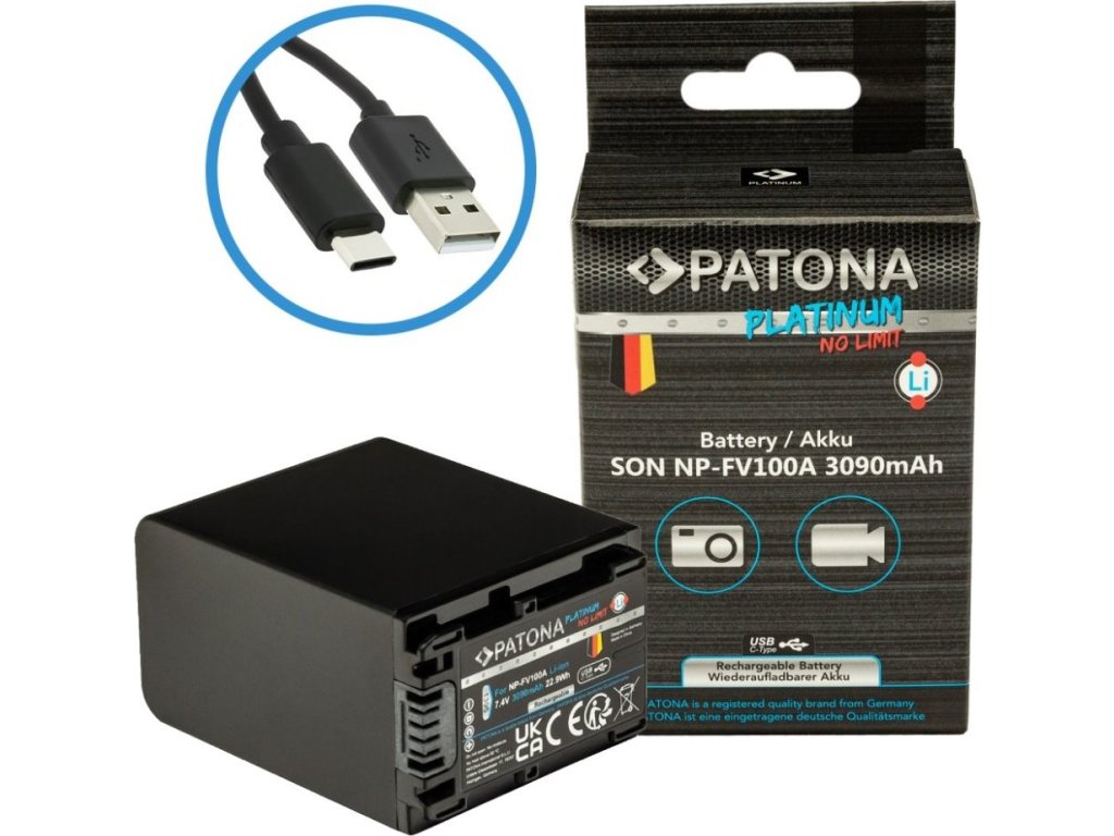 PATONA baterie pro foto Sony NP-FV100 3090mAh Li-Ion Platinum USB-C nabíjení