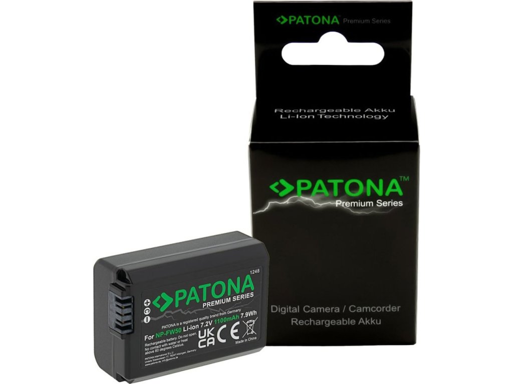PATONA baterie pro Sony NP-FW50Baterie se vyznačují vysokou kvalitou, mají integrovanou ochranu proti přetížení a přebití.