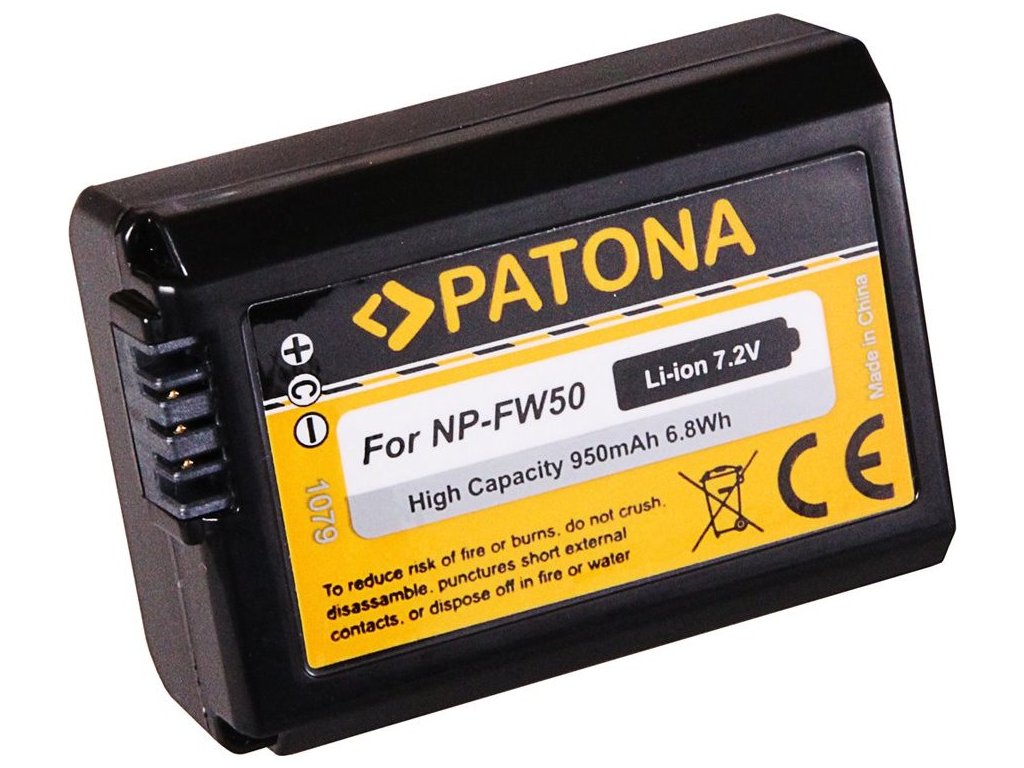 PATONA baterie kompatibilní s Sony NP-FW50Kvalitní akumulátor pro vaši videokameru nebo digitální fotoaparát.