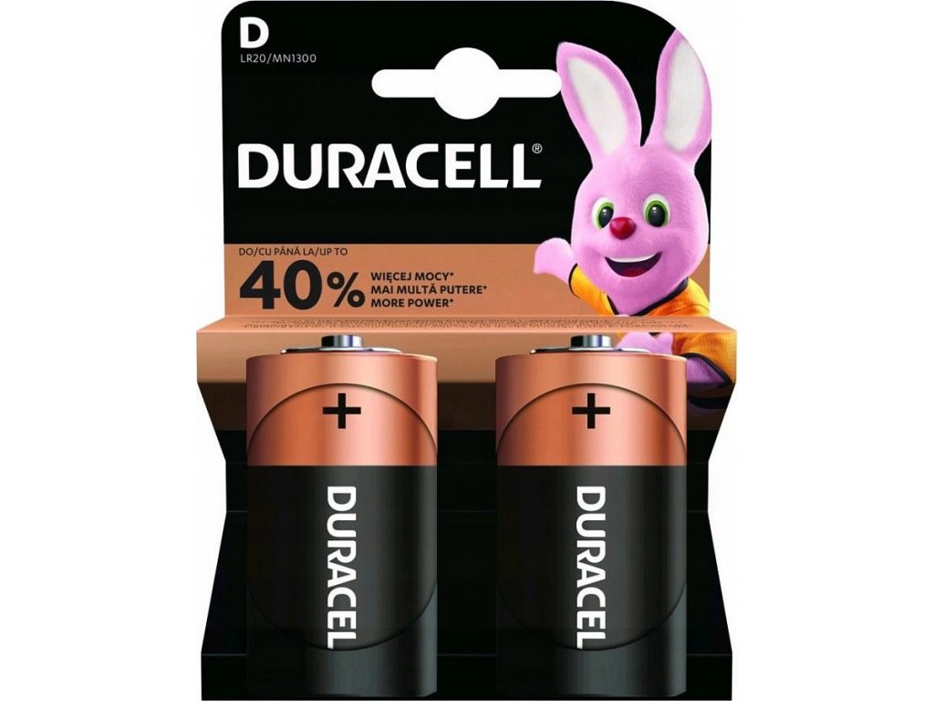 DURACELL Basic D 2 ksBaterie Duracell Basic jsou víceúčelové alkalické baterie vhodné pro běžné přístroje. Dokonalé uzavření horní části nylonem pomáhá předcházet vytečení baterií. Technologie Duralock udržuje nepoužívané baterie Duracell při běžném skladování jako nové a nabité po dobu až 10 let. Balení obsahuje 2 kusy baterií.
