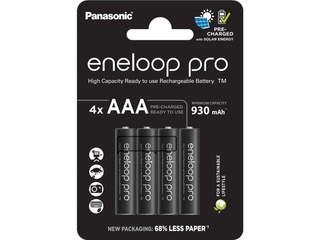 Ceny jsou za balení (blistr) - 4 kusy baterie.Kapacita min. 930 mAh.Jedná se o speciální NiMH nabíjecí baterie s extrémně nízkým samovybíjením.NiMH baterie PANASONIC - ENELOOP. Díky speciální technologii udrží tyto baterie po dobu jednoho roku 85% své kapacity. Baterie Eneloop se dodávají v nabitém stavu a jsou připraveny k okamžitému použití, což rozšiřuje možnosti jejich použití pro mnoho aplikací.Hlavní jejich přednosti jsou:- operativní použitelnost ihned po zakoupení: akumulátory jsou dodávány v plně nabitém stavu, před prvním použitím je není nutné nabíjet - proti primárním alkalickým bateriím jsou schopné dodávat větší vybíjecí proudy (povoleno až 2It) - lepší funkce za nízkých teplot - jsou ekonomicky výhodné - za běžných podmínek mohou být nabíjeny nejméně 500 krát - jsou šetrné k životnímu prostředí - neobsahují rtuť, kadmium, olovo ani jiné toxické látky - mohou být používány i v zařízeních, pro které se nehodí ostatní typy akumulátorů s větším samovybíjením (např. hračky, herní ovladače, bezdrátová zařízení atd.) - mohou být nabíjeny ve všech typech nabíječů určených pro NiMH hermetické akumulátory - při skladování odpadá povinnost, jako u ostatních NiMH akumulátorů, nabíjet akumulátory každých 6 měsíců- balení je nyní 100% bez plastů.