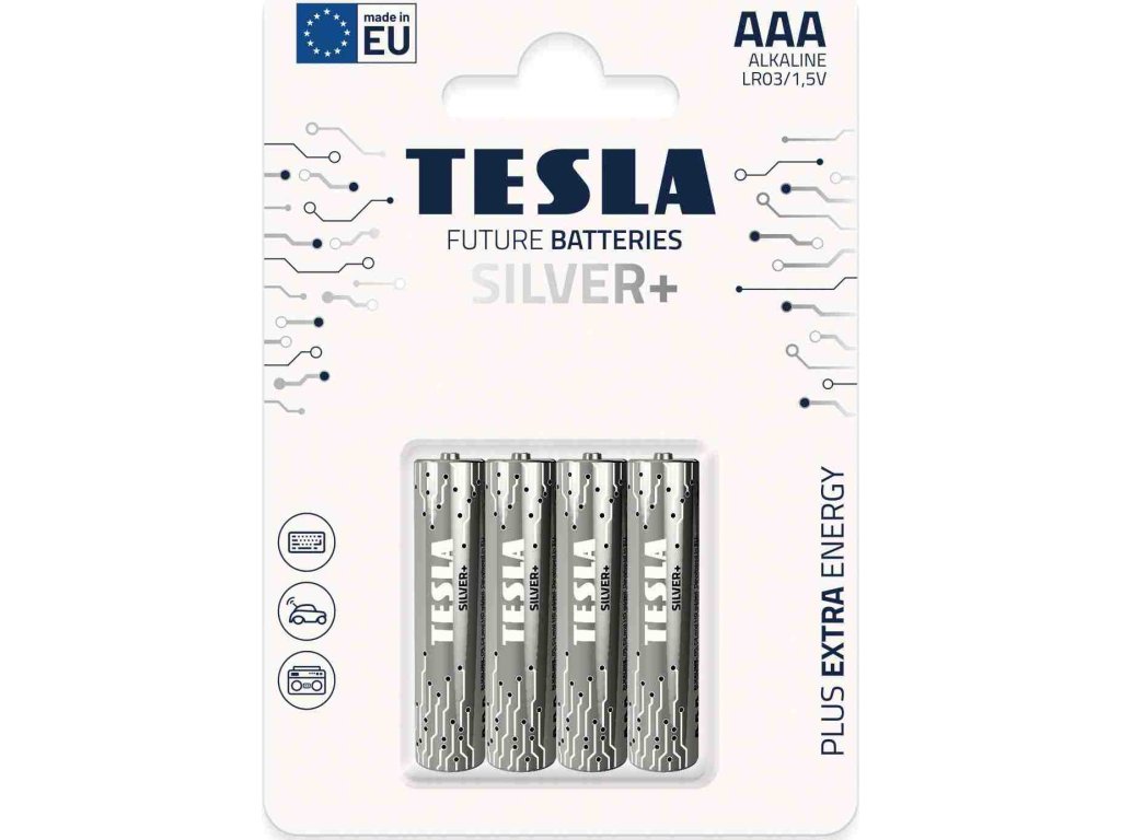 TESLA SILVER+ alkalická baterie AAA (LR03, mikrotužková, blister) 4 ks