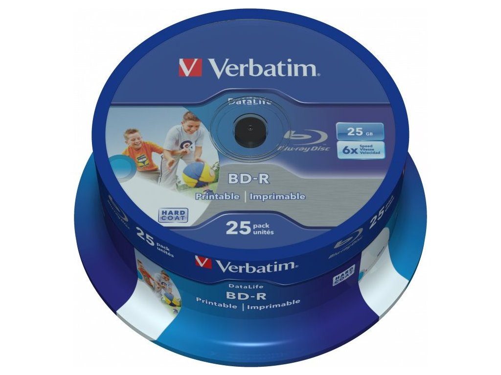 VERBATIM BD-R SL Datalife HTL (25-pack)Blu-Ray/Spindle/6x/25GB Wide Printable