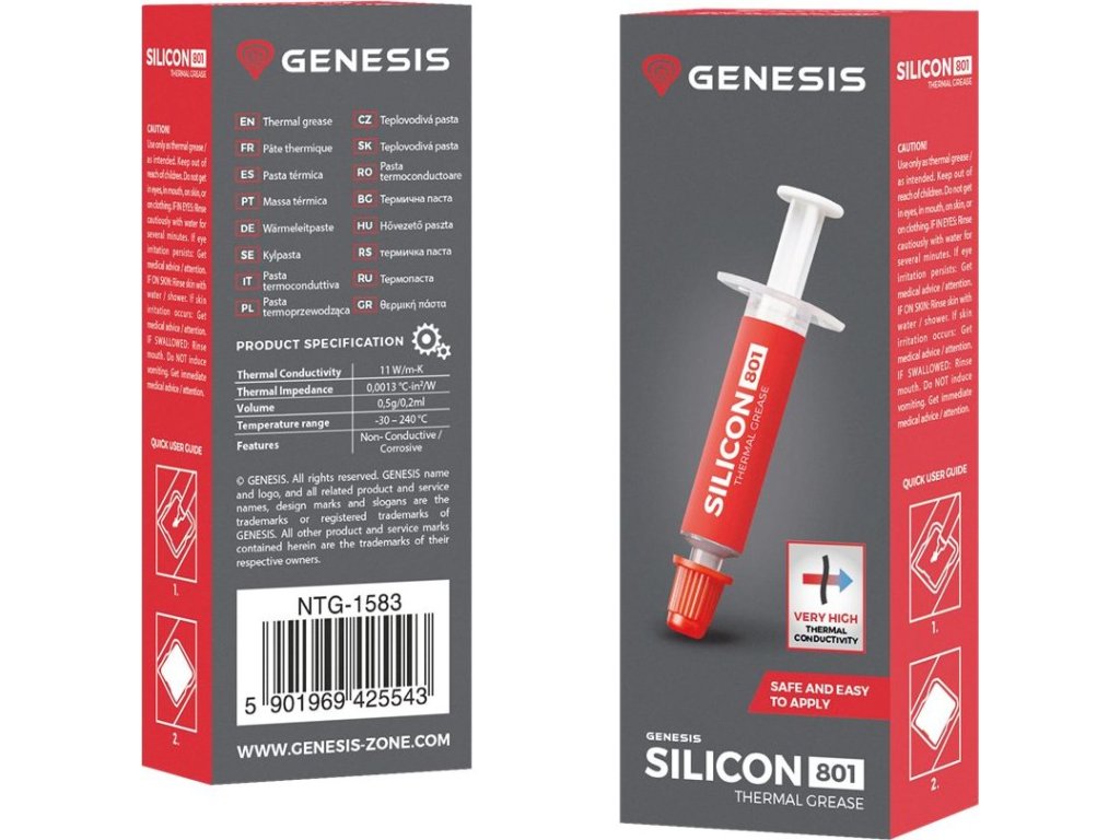 Genesis Silicon 801 je tepelná pasta, která splní očekávání majitelů výkonných počítačů, jejichž systémy jsou postaveny z komponent, které vyžadují výjimečná řešení pro dosažení optimální pracovní teploty.