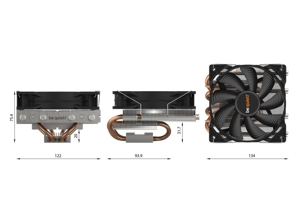 Be quiet! SHADOW ROCK LPChladič je vybaven 4 heatpipe a 120 mm ventilátorem s PWM regulací. K připojení slouží 4-pin PWM konektor.