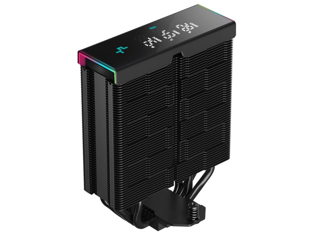 Chladič pro procesory Intel i AMD je vybaven čtyřmi heatpipe a 120mm ventilátorem s PWM regulací. Předností chladiče je ARGB podsvícení a praktický digitální displej, který zobrazuje teplotu, využití a spotřebu procesoru v reálném čase. Samozřejmostí je upozornění, pokud je teplota příliš vysoká. K připojení slouží 4pin PWM, 3pin ARGB a 9pin USB konektor.
