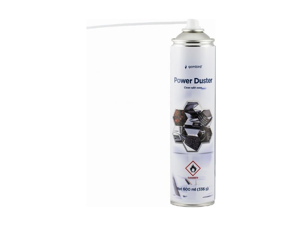 Stlačený vzduch pro čištění nepřístupných míst elektronických zařízení (klávesnice, tiskárny, faxy, fotoaparáty), aplikační trubička, objem náplně 600 ml.