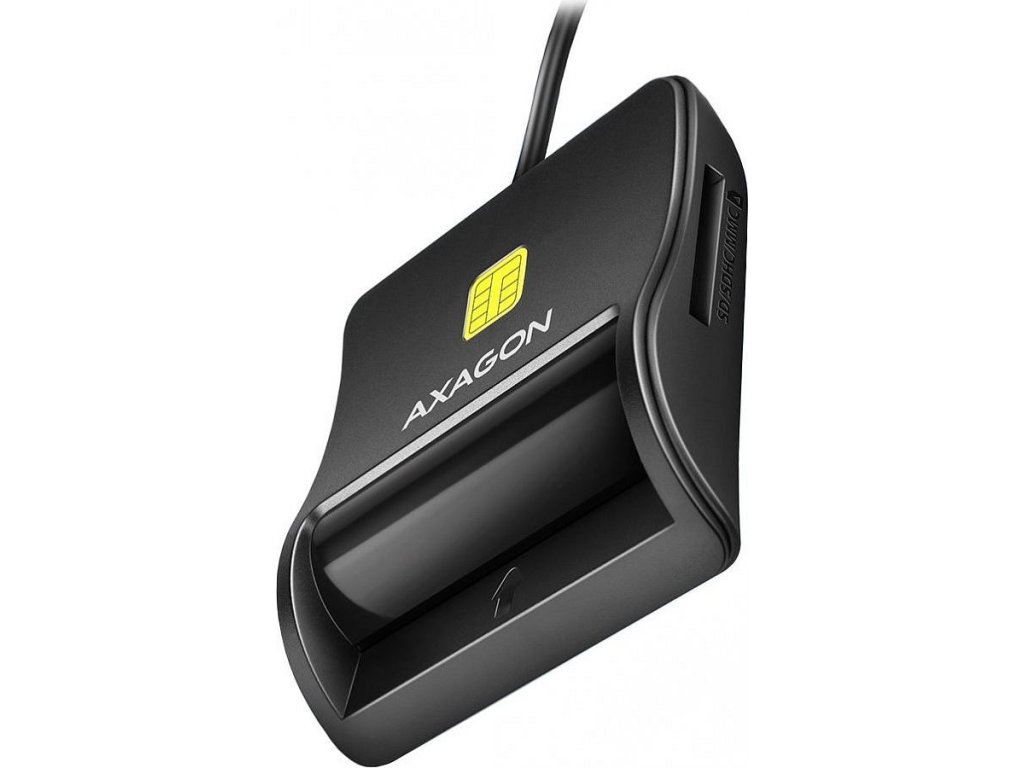 Kompaktní stolní čtečka Smart card / ID card AXAGON CRE-SM3SD FlatReader s USB 2.0 rozhraním obsahuje navíc sloty pro paměťové karty SD, microSD a SIM karty. Card reader podporuje všechny běžné formáty kontaktních Smart karet, čipových karet a dalších karet včetně kontaktních bankovních platebních karet nebo kontaktních elektronických občanských průkazů *. Čtečka je plně kompatibilní s aplikací eObčanka.