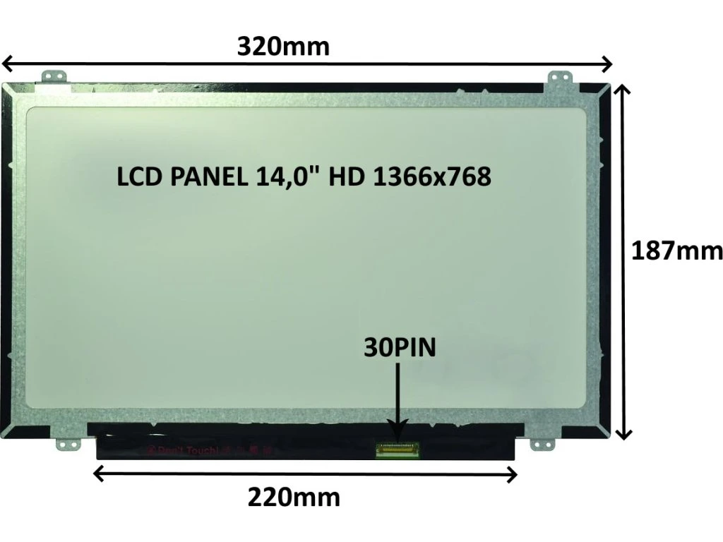 LCD PANEL 14,0" HD 1366x768 30PIN MATNÝ / ÚCHYTY NAHOŘE A DOLE