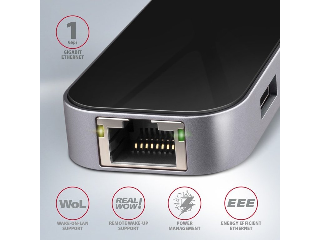 Replikátor portů je ideálním doplňkem pro notebooky bez USB-A konektorů, síťové karty a video výstupu. V hubu lze využít Vaše stávající USB periferie bez nutnosti pořizování nových. Díky funkcím Plug and Play a Hot Plug je samotné zapojení hubu velmi jednoduché bez složité instalace a také lze jednoduše připojovat a odpojovat periferie za běhu počítače. Rozbočovač se nezalekne ani připojení k telefonům s USB-C konektorem. K telefonu tak připojíte například flash disk, klávesnici, myš, monitor, TV nebo projektor.