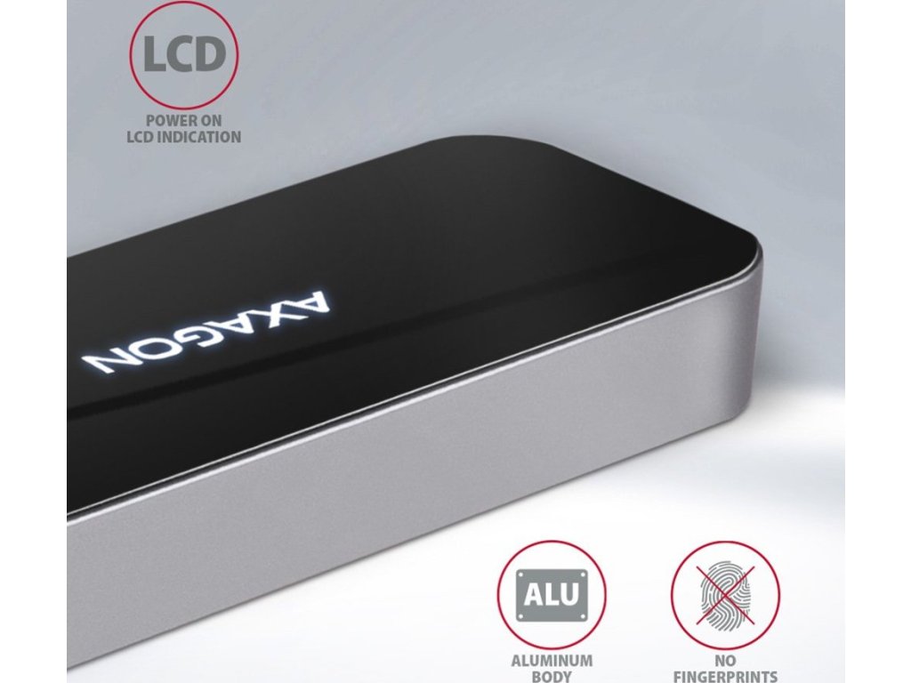 Elegantní hliníkové tělo zajistí nejen mechanickou odolnost, ale i kvalitní chlazení. Horní lesklá část s decentně podsvíceným logem podtrhuje prémiový vzhled hubu.