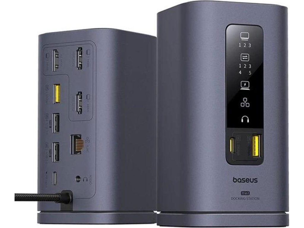 Baseus Dokovací stanice Spacemate 11v1 (USB-C PD, USB-C, 2x USB-A, 3x HDMI) šedá