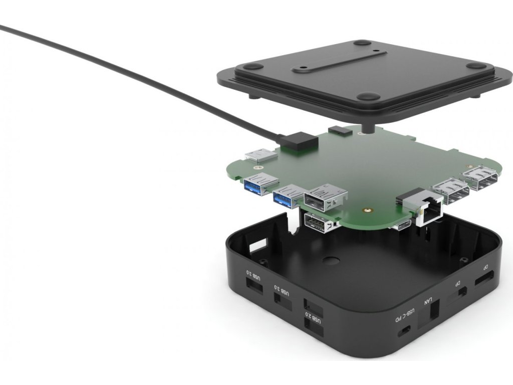 Kancelářská dokovací stanice USB-C, která podporuje až 2x externí monitor v rozlišení 4K. Stanice je kompatibilní s jakýmkoliv notebookem vybaveným portem USB-C nebo Thunderbolt 3. 6x USB port, spolehlivé a rychlé připojení do podnikové sítě díky integrovanému LAN portu a podpora instalace za monitor, to vše z této dokovací stanice dělá ideálního společníka pro profesionály. Samozřejmostí je podpora nabíjení vašeho notebooku či tabletu, a to až 100 W (napájecí adaptér je přiložen).