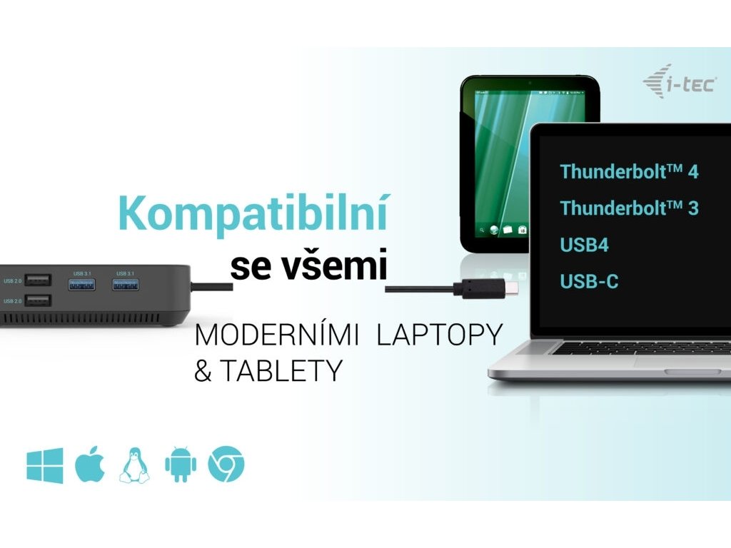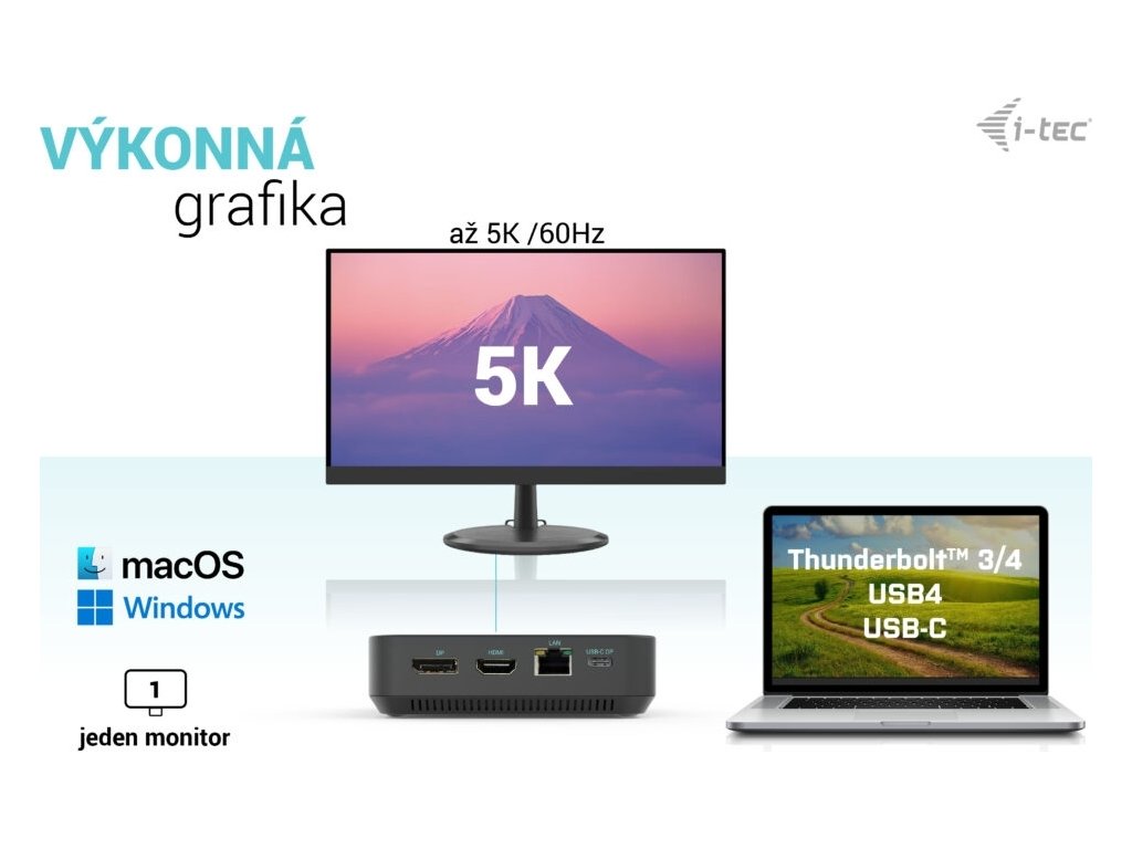 • Kompatibilní s notebooky a tablety s rozhraním USB-C, USB4 a Thunderbolt. (Hostitelské zařízení musí podporovat režim DisplayPort Alt).
