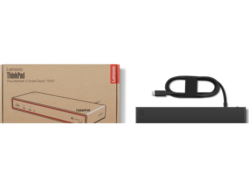 Dokovací stanice nové generace Power House. Robustní způsob, jak maximalizovat produktivitu a pracovní prostor, zbrusu nová dokovací stanice ThinkPad® Thunderbolt™ 5 Smart Dock 7500 je vlajkovou lodí v naší nové sérii doků, která nabízí chytřejší způsob práce.