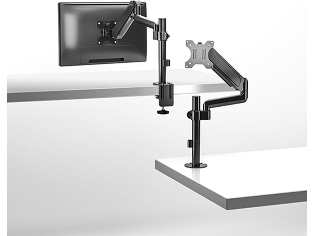 Díky odolné ocelové konstrukci poskytuje stabilní podporu pro jeden monitor s úhlopříčkou 17" až 32" a hmotností až 9 kg. Flexibilní konstrukce pro dostatečné nastavení výšky a pozorovacích úhlů s možností nastavení orientace monitoru na výšku nebo na šířku. Součástí balení jsou průchodky a svorky pro instalaci na téměř jakoukoliv pracovní plochu. Odnímatelná deska VESA pro uživatelsky přívětivou instalaci. Součástí balení jsou kabelové spony pro usnadnění organizace vedení kabelů.