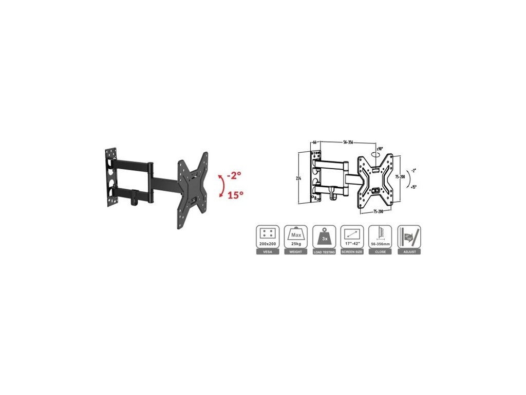 Držák na TV, VESA 200x200, maximální nosnost 25kg, vhodné pro úhlopříčky 17"-42", možnost nastavení vzdálenosti od zdi 56-356mm,