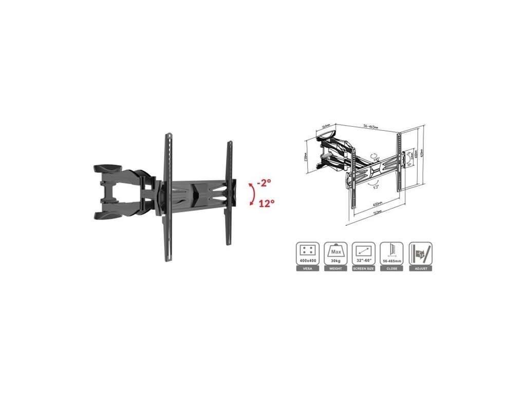 Držák na TV, s prostorem pro uložení kabelů, VESA až 400x400, maximální nosnost 30kg, vhodné pro úhlopříčky 32"-60", možnost nastavení vzdálenosti od zdi 56-465mm, nastavitelný sklon