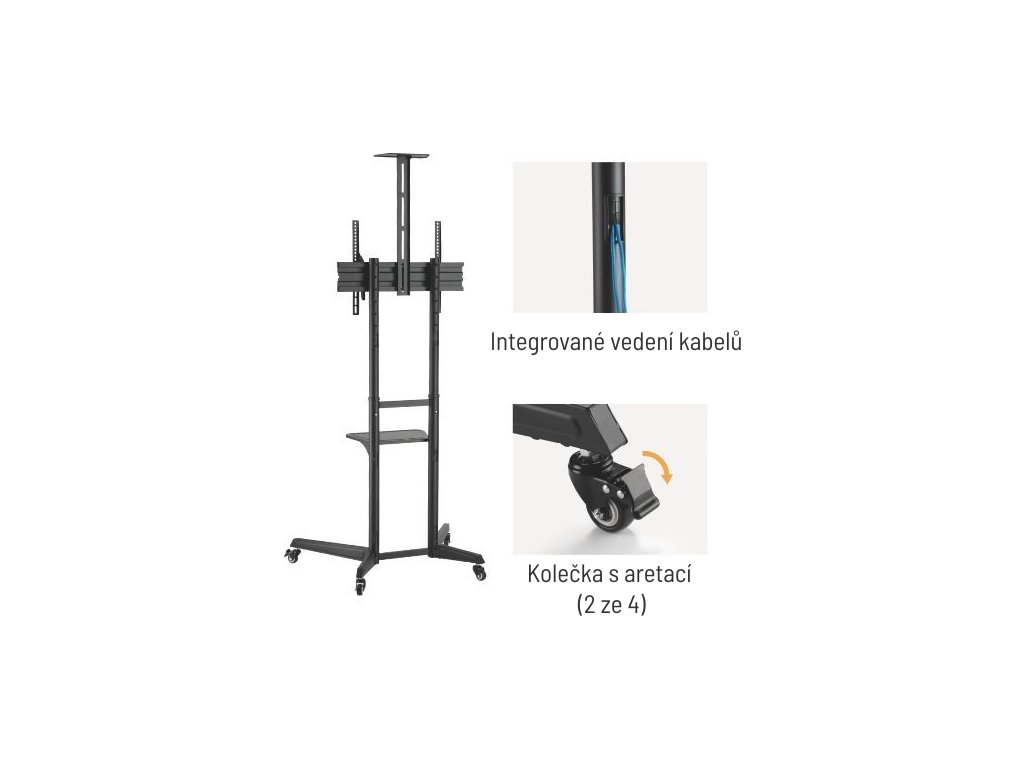 Pojízdný stojan Brateck T1040T pro TV 37"-70" 50kg 2 police