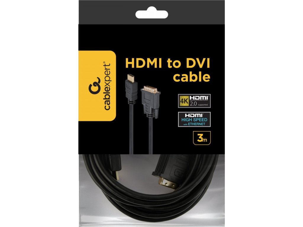 GEMBIRD Kabel HDMI - DVI 3m (M/M, DVI-D, Single Link, zlacené kontakty, stíněný)